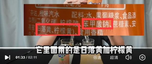 我们先来看看中国版芬达饮料的主要成分包括水、白砂糖、果葡糖浆、食品添加剂、食用香精等。其中,食品添加剂的种类和含量相对较多,包括柠檬酸、苹果酸、甜蜜素、安赛蜜等,也有防腐剂苯甲酸钠和色素日落黄、柠檬黄,这些添加剂在一定程度上提升了饮料的色泽、口感和稳定性。