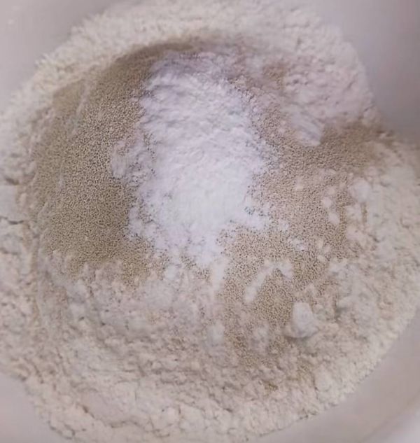 首先在盆中加入300克面粉,加入4~5克的酵母粉,再加入2克泡打粉,5克白砂糖然后再加入少许的食用油,然后用30度左右的温水来和面,这个水温可以最大程度的激发酵母的活性,能够减少发酵的时间。