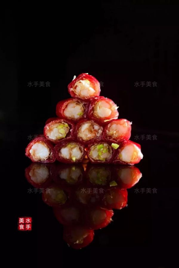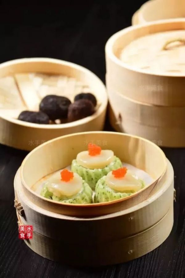 2.少量缀色:即在坚持本色的基础上,对点心点缀一点色彩,适当装饰。这种点缀的原料应为可食的原料,如葱煎馒头,可在洁白的馒头上点缀上碧绿的葱花,显得一清二白。苏式糕团中常加果料,果料的天然色彩星星点点起了缀色作用。