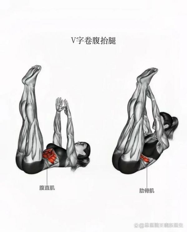 动作要领:身体躺平,双手与双腿伸直向上方伸展。利用核心的力量将上半身、下半身向上方伸展,双手触碰双脚脚踝,呈现字母V一样的姿势。
