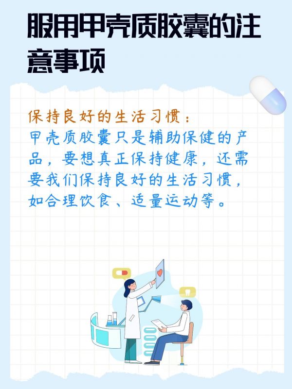 接着,我又告诉了他一些服用甲壳质胶囊的注意事项:遵循医嘱、注意与其他药物的相互作用、保持良好的生活习惯。