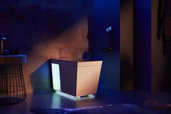 那就用它!由知名卫浴品牌科勒(Kohler)研发的智能马桶,表面上看起来四四方方的,像平时我们会用到的收纳箱,但其实它会“说话”、会发光,而研发初衷是为了解决“上厕所的寂寞”。