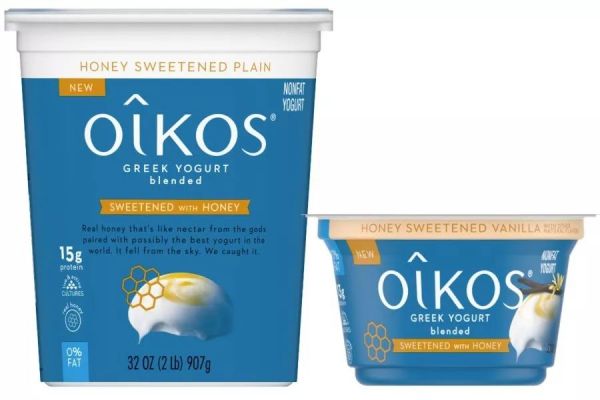 以传统希腊酸奶为主的Oikos品牌,所含蛋白质含量是普通低脂酸奶的两倍,且蛋白质包含了人体所不能合成的全部9种氨基酸。除蛋白质优势外,Oikos酸奶还包含大量活菌,可分解牛奶中的乳糖。该品牌今年将推出浓稠型奶油搅拌酸奶新品Oikos Sweetenedwith Honey-Maple,添加的均是天然糖。
