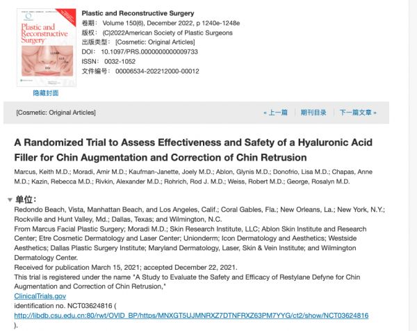 相关研究结果以“Restylane Lyft for Aesthetic Shaping of the Nasal Dorsum and Radix: A Randomized, No-Treatment Control, Multicenter Study”为题,于2022年12月发表在《Plastic & Reconstructive Surgery》杂志。