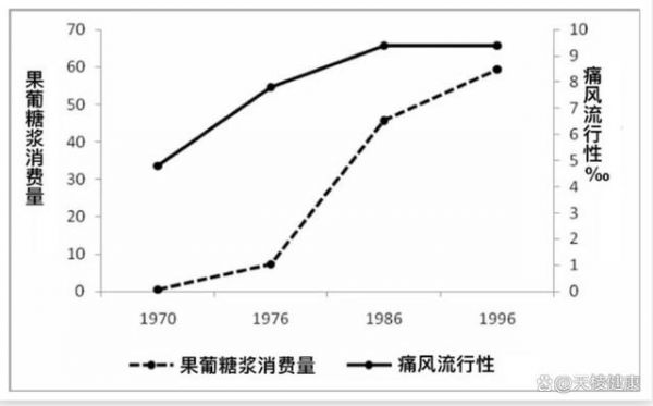 长期吃果葡糖浆,还会引起痛风。70 年代果葡糖浆诞生之后,痛风发病率从不足 3% ,增涨到了 9% 。