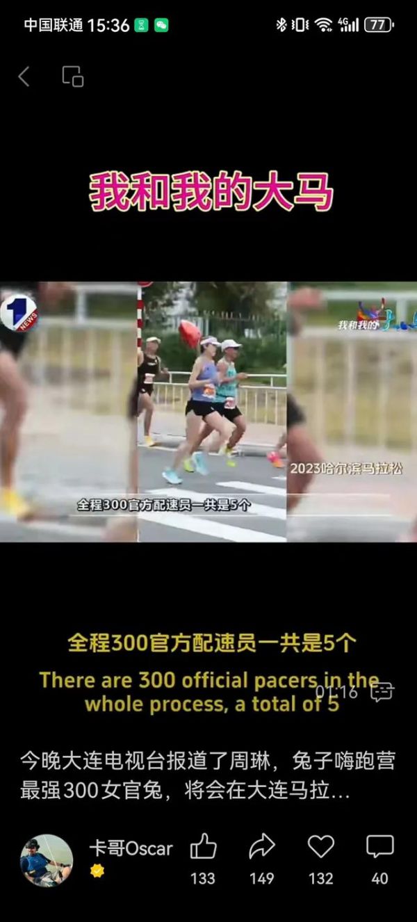 大众跑者和业余选手,很大一部分人的月跑量都是超过300公里。比如说,很多马拉松的兔子,每日跑量都超过300公里。比如,目前圈里比较火的全马300的女兔子,周琳。据说月跑量300多公里。