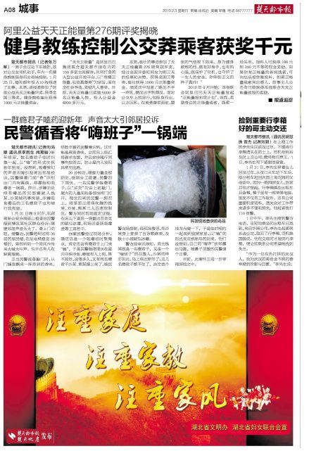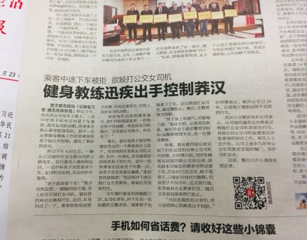 崔壮教练在公交车上见义勇为受到凤凰网楚天都市的报道。 [6]