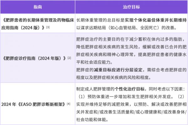 鉴于此,国内外多部肥胖症相关指南/共识纷纷在肥胖症的诊断、分型、治疗目标和治疗药物方面做出了更新(表 2~3)。