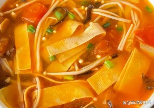 4. 加入豆皮:将切好的泡发豆皮条放入汤中,继续煮5-7分钟,直到豆皮完全熟透并吸收了汤汁的味道。