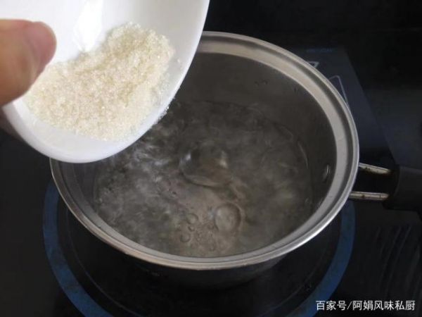 第三步:在水沸腾之后我们就可以放入冰糖了,冰糖根据自己的口味适量添加。