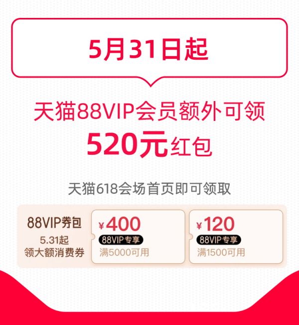 老凡尔赛了!天猫618期间,88VIP额外再享520元红包