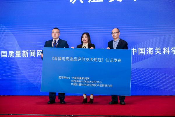 在峰会现场的嘉宾,以及中国质量新闻网、中国海关科学技术研究中心、中国计量科学研究院技术创新研究院三家单位,携手数十家企业联合发起《直播电商质量提升倡议》,并发布首个针对直播电商选品的行业技术规范《直播电商选品评价技术规范》。