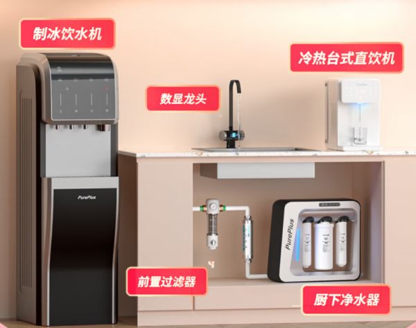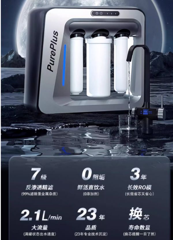 璞勒(PUREPLUS)UTR600厨下净水器加制冰饮水机,厨下净水器负责多级高精度反渗透方式净化饮水,配备3年长效RO膜能够去除水中含有的重金属、病毒、细菌、悬浮颗粒物等杂质,并去除氯味改善口感,同时告别“年抛型”滤芯的高额使用费用。