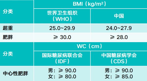国内外研究中主要是使用 BMI 诊断超重/肥胖,使用腰围(WC)诊断中心型肥胖。