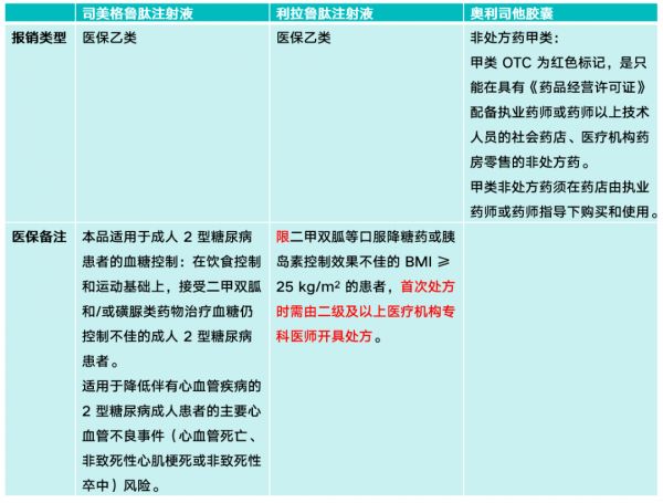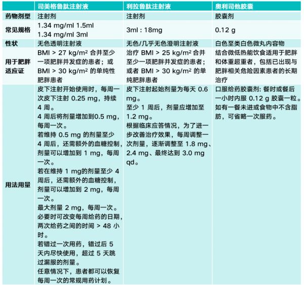 司美格鲁肽、利拉鲁肽、奥利司他特点比较见下图 [11-14]