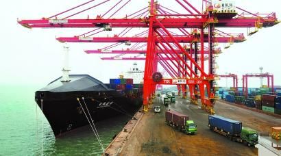 11月1日,载重5万吨的集装箱班轮“日照盛世”缓缓靠泊在日照港西15号集装箱专用泊位,这是日照港靠泊接卸量最大的集装箱船舶。