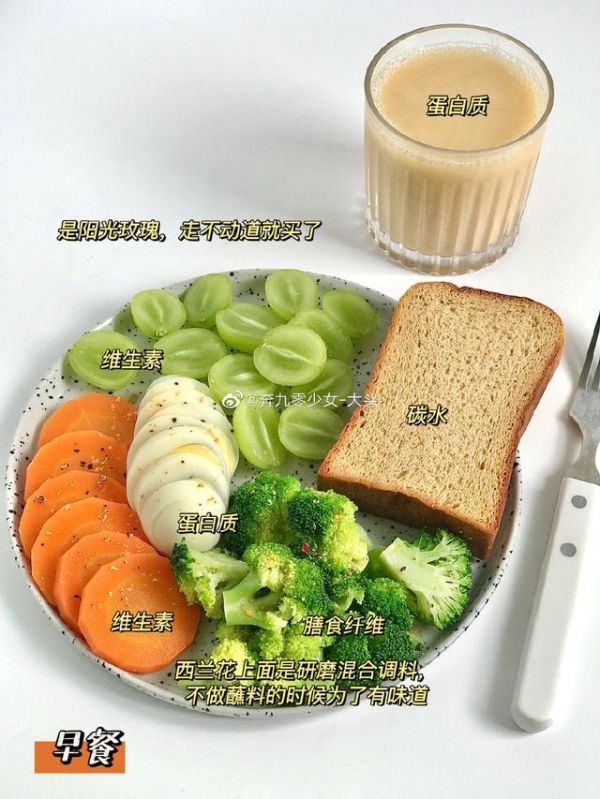 早:面包西兰花胡萝卜鸡蛋青提每日一杯自律豆浆粉