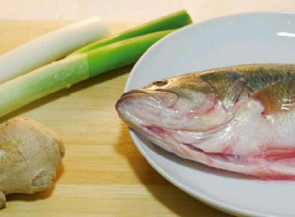 新鲜的鲈鱼、大葱、生姜
