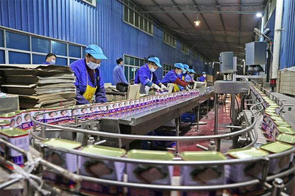 赖维学表示,在党的十九届六中全会的指引下,公司将不断创新求发展,以新产品研发为突破口,不断适应广大消费者的需求,发展壮大企业,实现五年再打造一个新德佳的目标。目前,公司正着手自热米饭等系列速食产品的出口认证,力争早日让产品走出国门,走向世界。工人将产品打包装箱