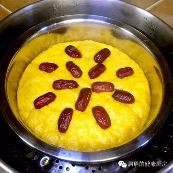 红枣南瓜发糕是一款非常健康、低热量的中式面点,红枣补益气血,南瓜性温,具有排毒美肤的作用,南瓜泥加入纯牛奶、面粉和酵母,搅拌发酵后,放上红枣肉蒸熟即可,香甜松软,美味可口,尤其适合女性作为减肥瘦身期间的点心哦!