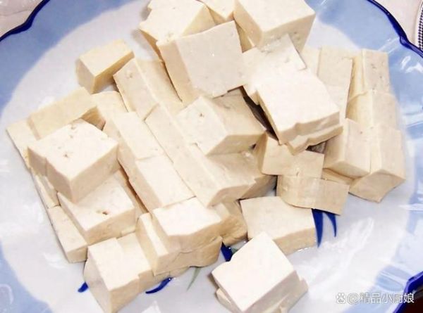 1.如果豆腐不够嫩,可以先焯水或用纱布包裹住压干水分后再切块。