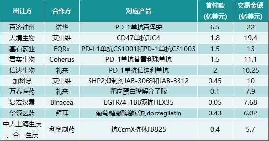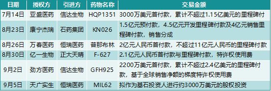 来源:公司公告,中康产业资本研究中心(华领医药的交易额按签约日汇率换算)