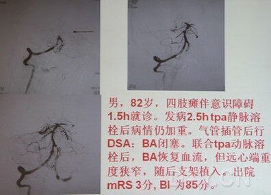 发病 2。5htpa 静脉溶栓后病情仍加重。气管插管后行 DSA:BA 闭塞。