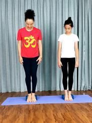 接着,将两手插在腰间,沉肩,保持大约一分钟左右。
