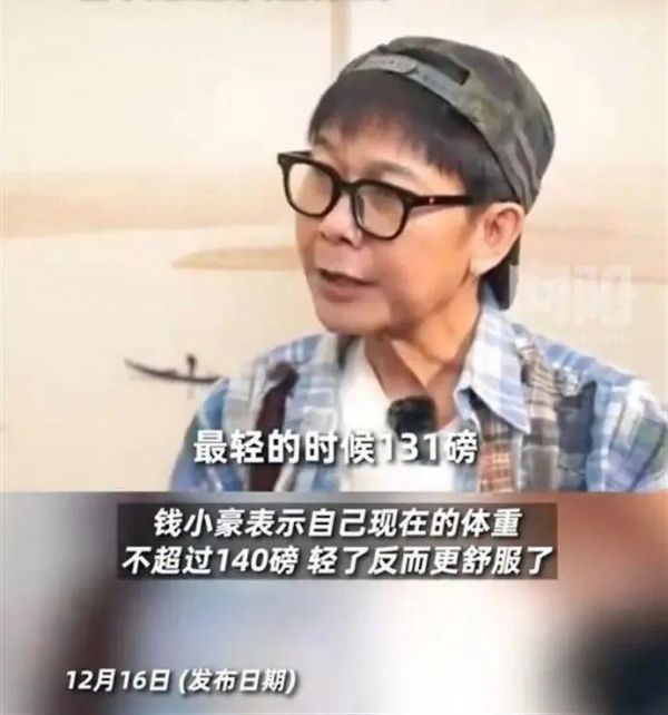 钱小豪表示,自己最轻的时候60公斤左右,重的时候约有80公斤,现在的体重在63公斤左右,轻了近40斤反而更舒服了。为了不在这个年纪出现大肚腩,他每天几乎只吃一顿饭,这样使得他的胃口变小了。尽管饮食控制严格,但他强调自己的身体状况良好。不过,钱小豪也表示,自己患有青光眼和轻微白内障,需要不断滴眼药水才能维持正常。但这并不影响他的整体健康状况。