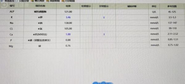 经治疗后2周复查电解质,钾恢复正常,钙稍低,患者肢体乏力及肌肉酸软症状较前好转,下肢活动如前,食欲不振症状好转,饮食尚可,饮食量较前增加,无恶心症状。