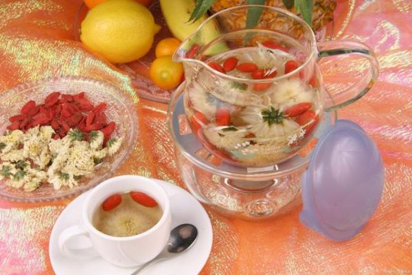 菊花茶本身有清肝明目的功效,枸杞也具有明目养肝润肺的作用,属于阴阳同补的食材之一。