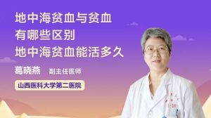 地中海贫血与贫血有哪些区别 地中海贫血能活多久 2018-11-29阅读:7.94w 地中海贫血是贫血的一种,可以分为各种类型,比如说缺铁性贫血、进入细胞性贫血、再生障碍性贫血、溶血性贫血等等。地中海贫血是属于溶血性贫血的一种,它是由于基因的缺陷,导致红细胞内的一种或者是几种珠蛋白生成缺陷,从而出现了红细胞寿命的缩短,出现溶血性贫血,它的主要表现就是贫血、黄疸、脾大以及骨骼发育的异常,也就是面貌异常等等。地中海贫血的患者的类型不同,寿命也是不同的。比如说静止型或者是轻型的,和正常人一样的寿命;中间型的地中海贫血,有轻到中度的贫血,轻到中度的脾大,通过积极的治疗可以活到成年;重型地中海贫血一般的是在幼年夭折。 葛晓燕