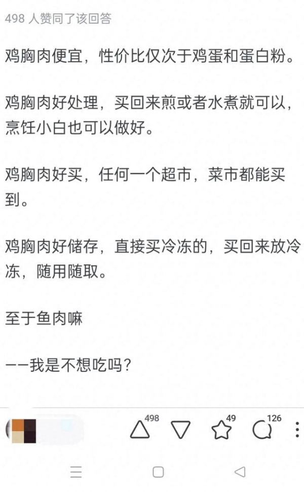 为啥大多数健身减肥的人推荐肉类都是鸡胸肉,而不是鱼肉?太穷了