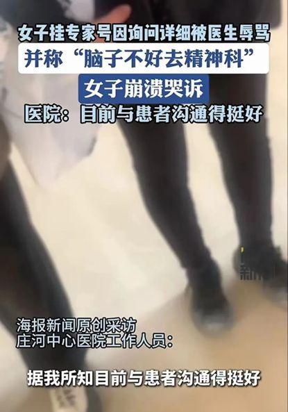 据了解,该女子因骨折到大连市庄河中心医院挂专家号就诊。对住院的流程、费用等细节不清楚,询问详细,导致医生因她多问了几个问题而表现出不耐烦,甚至辱骂她“脑子不好使”,建议她去精神科看看。