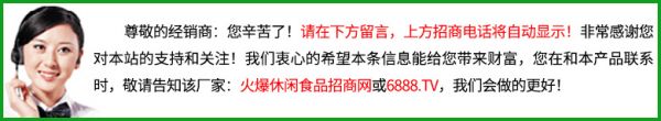 1、进货奖励支持:新加盟经销商均有首批进货搭赠; 2、市场推广支持:总部提供日常广宣品、促销物料等支持; 3、严格的区域保护:每个区域只设一家代理商,严禁串货; 3、强大的人员支持:厂家派驻专职业务员帮助代理商开拓市场和维护市场,实行跟踪服务; 5、推广活动支持: 提供不定期节假日推广活动支持(活动方案、活动物料、临促人员工资等)。 6、退换货支持 (具体招商支持政策,请电话咨询或留言了解详情)代理条件: