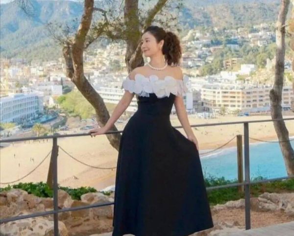 照片中的林心如身着一袭黑白相间的长裙,优雅中透着知性,精致的妆容与标志性的甜美笑容相得益彰。
