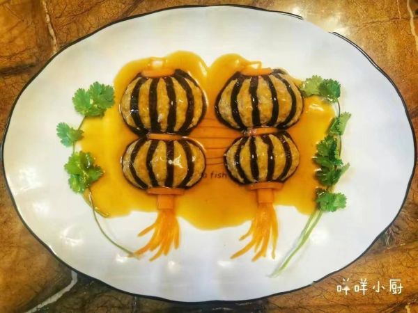 过年我常常见到大红的灯笼高高的挂起,节日的喜庆味道一下子就出来了,这个茄子灯笼一端上桌这年味就浓了,喜庆呀。