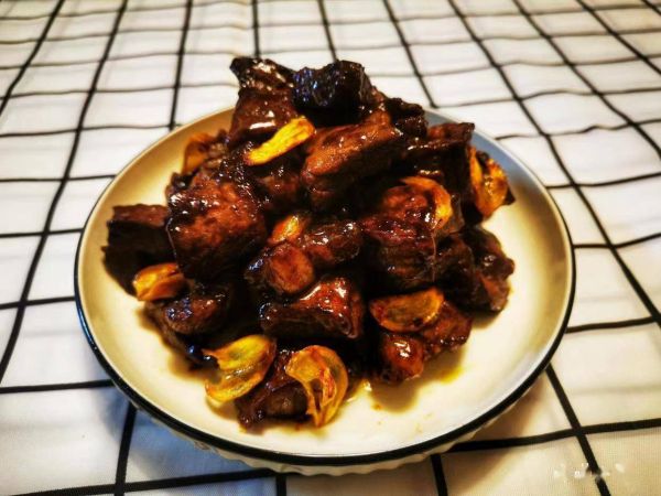 所需食材:牛里脊500克、大蒜5瓣、生抽3勺、老抽1勺、蚝油1勺、苹果醋1勺、白糖少许、淀粉少许、食用油适量。