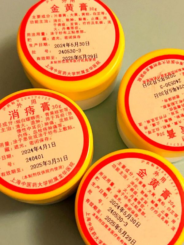 龙华医院的金黄膏特别火,后来我又发现了自制的消将膏。这个消炎效果也很棒,涂上一会儿就不疼了,肿胀也消失了,消肿消痦的效果很快。坚持涂下去,说不定能把痔疮也消掉呢!救急的时候特别管用!
