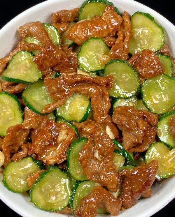 4. 倒入黄瓜,翻炒均匀即可出锅。