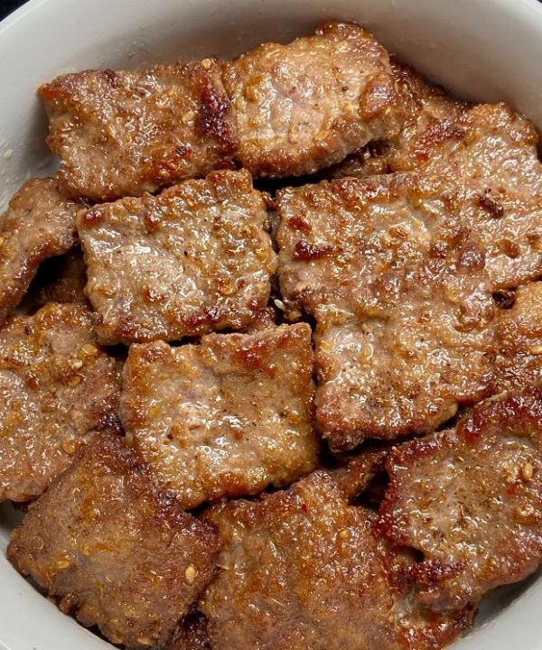 2. 热锅倒少许油,油热后放入腌好的牛肉片,煎至两面焦黄。