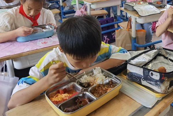 9月1日,杭州市文渊小学学生在学校用午餐。(杨森毅 摄)
