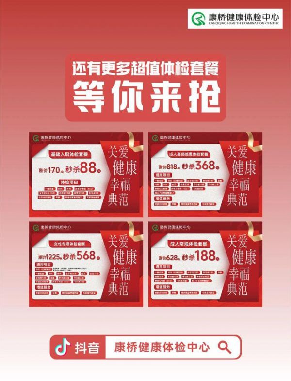 年末钜惠补贴!188元抢康桥健康体检中心原价628元成人常规体检套餐!有效期1年