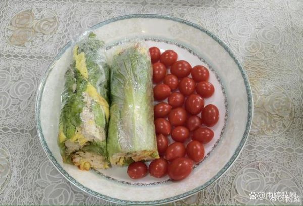 生菜里面包裹着肉,还搭配了胡萝卜等,3个生菜肉卷,看起来扎扎实实地,应该也能吃得饱,荤素搭配,营养也均衡。
