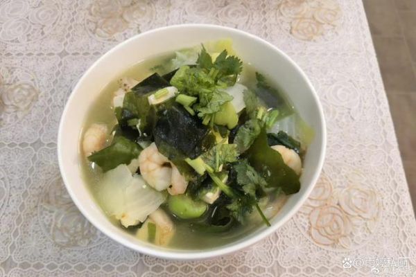 海带、虾仁,都是富含多种氨基酸、矿物质的海鲜产品,直接水煮,最大程度保留了食材的原味原香,营养少流失 ,搭配水煮西蓝花,吃上一大碗,应该也能吃得饱,看起来清汤寡水,却是营养均衡,也能促进肠道排出多余的垃圾,减少优质的吸收。