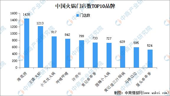 三、火锅门店数TOP10品牌情况