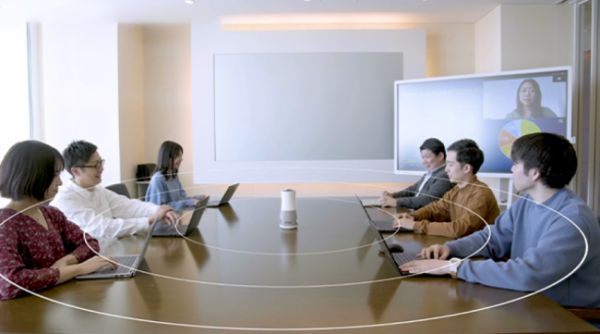除了画质,音质的表现对于视频会议也尤为重要。360V1全向麦克风支持6m拾音,智能音效增益,可根据声源距离自动将声音调整到最佳音量,设备近处和远处的人声都能被清晰平稳收录。特别是3个扬声器设计的360度清晰性,远超出传统产品1-2个扬声器的效果。