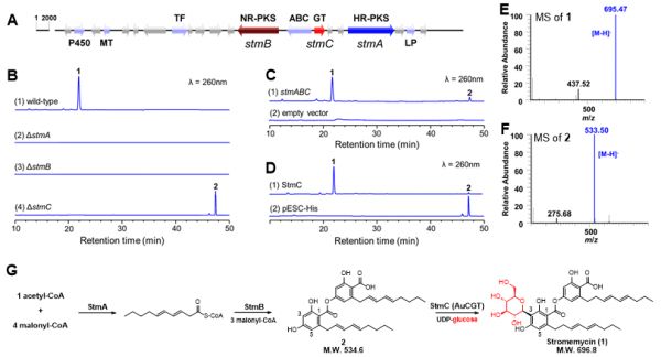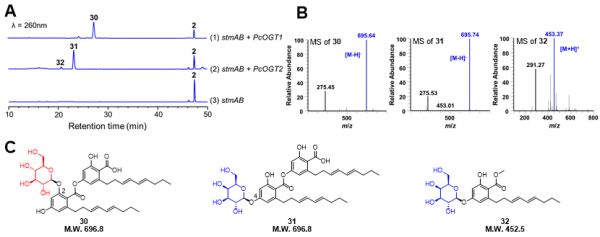 图4. 新颖糖苷化合物的组合生物合成
