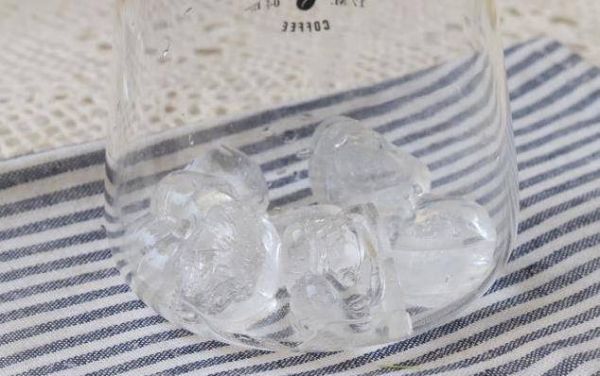 6、之后,取一个好看的透明玻璃杯,将事先冷冻好的冰块放入杯子的底部,数量取决于个人的喜好哈,喜欢喝冰凉口感的可以多放一些,不想喝冷饮的话可以不放冰块哦。