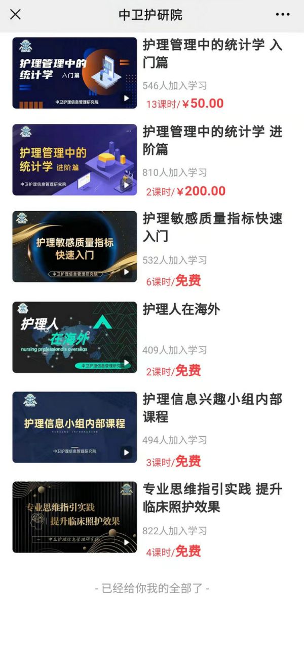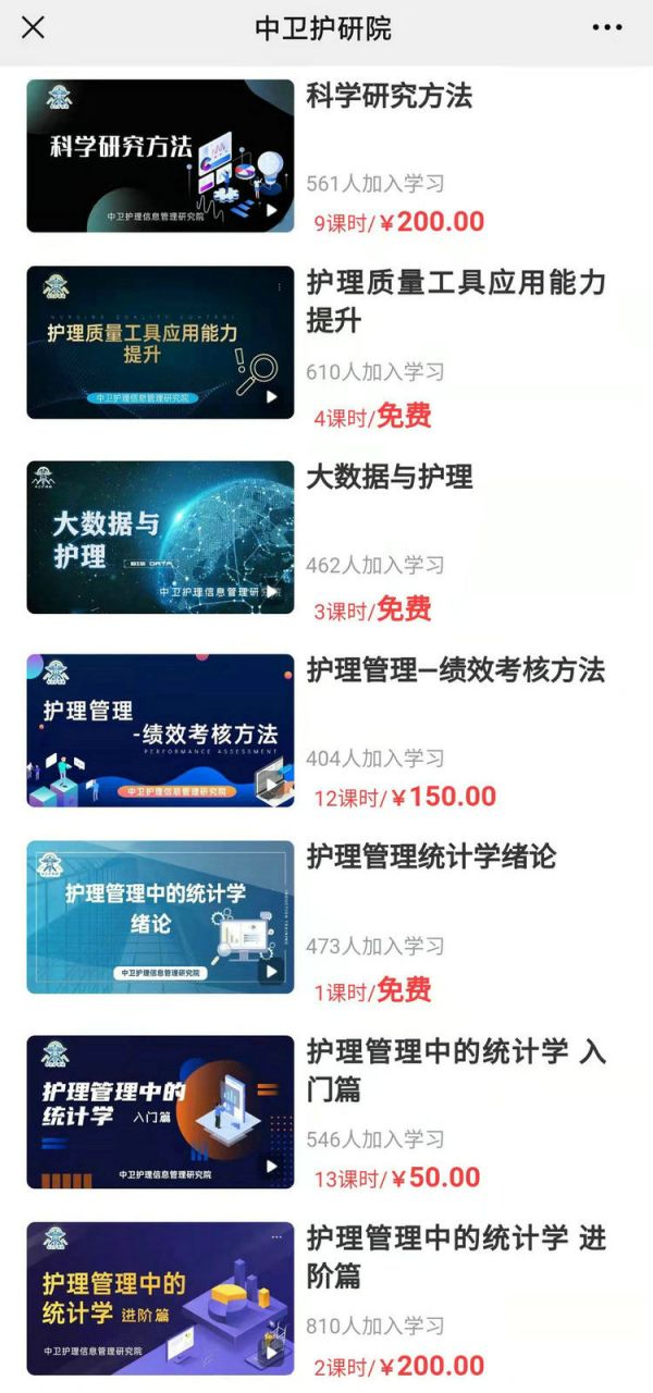 中卫护研院精品系列课程